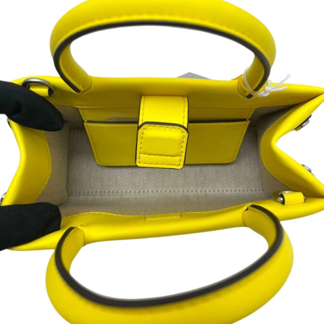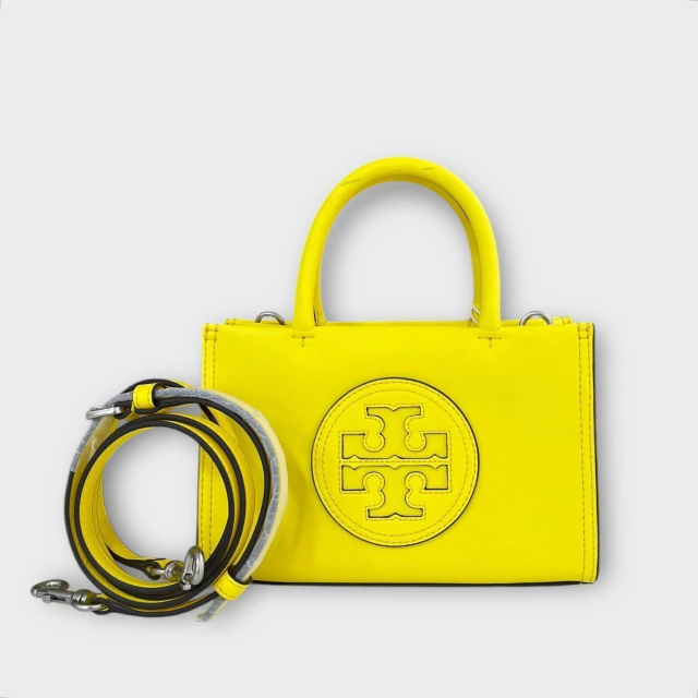 Tory Burch Tote Ella Bio confeccionada em couro na cor amarela, ferragens na cor prata, fechamento por botão magnético, compartimento interno único com um bolso aberto, alça dupla de mão fixa e alça de ombro removível e ajustável em couro.