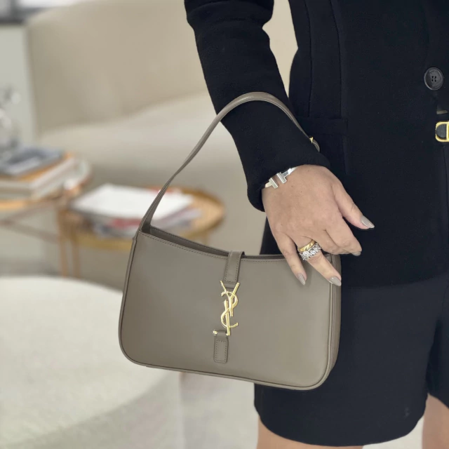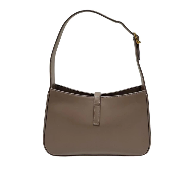 Saint Laurent Le 5 à 7 confeccionada em couro na cor marrom, ferragens na cor dourada com detalhe de logo YSL, fechamento por encaixe, compartimento interno único com um bolso por fecho em zíper, alça de ombro ajustável em couro.